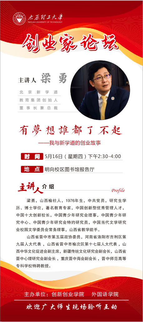 报告主题:有梦想谁都了不起——我与新学道的创业故事