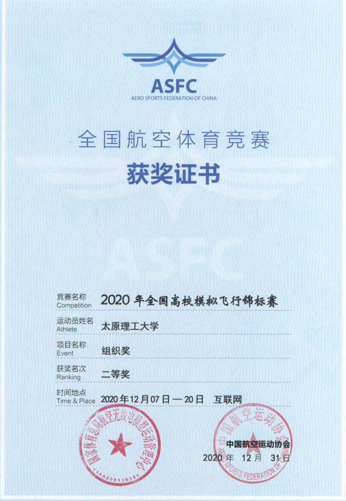 全国高校模拟飞行锦标赛是我国飞行专业高校和爱好模拟飞行的老员工们广泛参与的全国最高水平的模拟飞行竞赛,被民航局称为地面教学的盛会。继2019年承办全国高校模拟飞行锦标赛以来,航空飞行器创新基地队员努力拼搏,与国内知名航空院校同台竞技,首次取得优异成绩,为公司模拟飞行书写新的篇章。航空飞行器创新基地注重队员对于航空知识的运用能力,积极开设模拟飞行课程和训练,在模拟操作的过程中切实提高队员们对理论的理解与应用能力,基地融合师生资源申报2020年“虚拟现实模拟飞行仿真实验项目”获批山西省高等公司虚拟仿真实验教学项目,为公司飞行技术专业的相关课程开展提供帮助。如今的航空飞行器创新团队不仅是bg大游集团官方网站航空特色的载体、符号,也是培养员工创新能力的实践平台,更是推进飞行器设计、模拟飞行、承载梦想的平台。