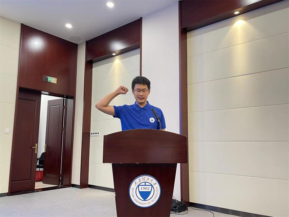 本次比赛总裁判长续欣莹代表全体裁判宣誓,郑浩楠同学代表全体参赛队员宣誓。
