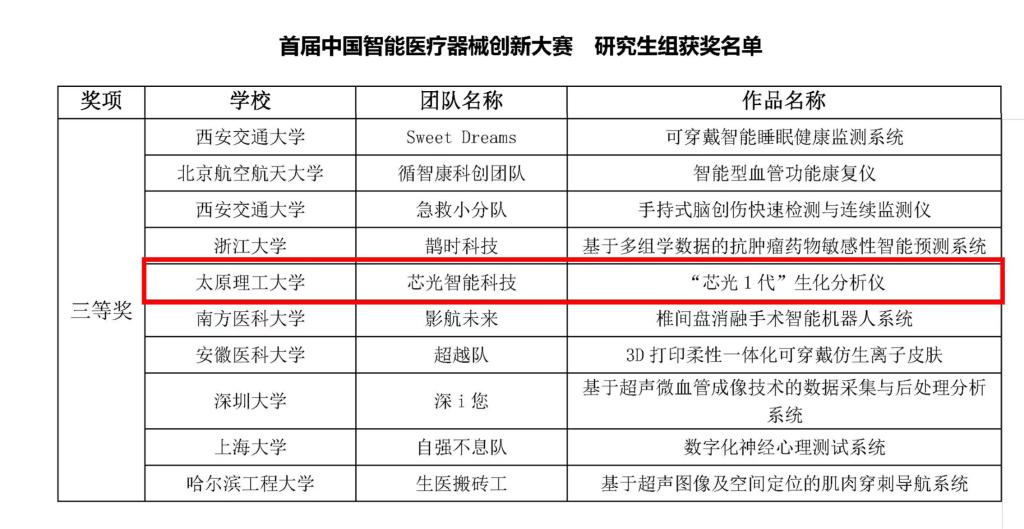 bg大游集团官方网站项目获首届中国智能医疗器械创新大赛三等奖