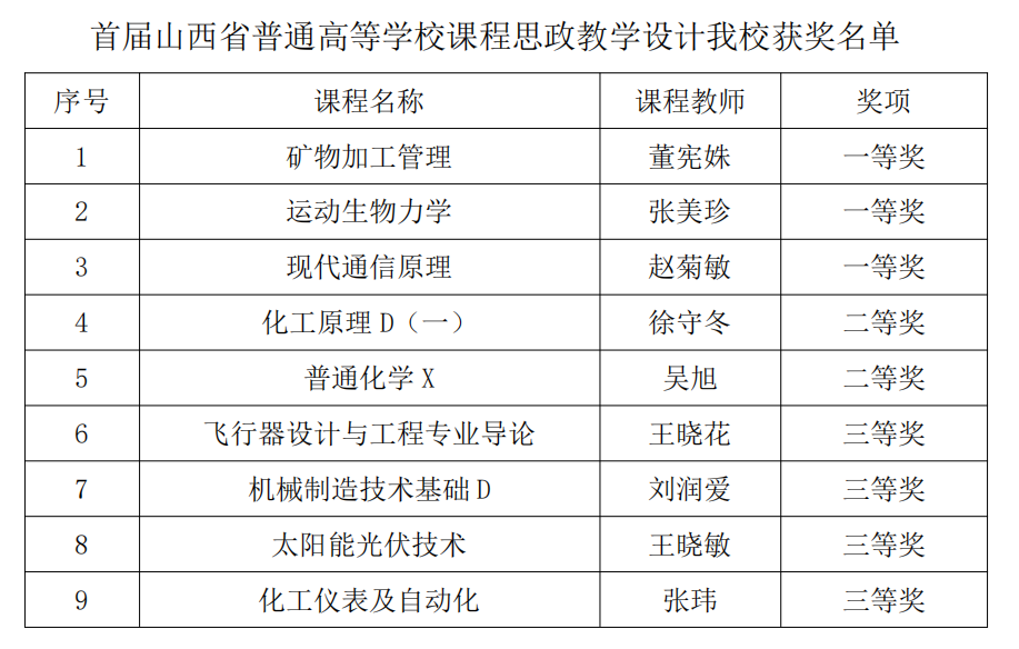 公司九位教师荣获山西省首届课程思政教学设计大赛佳绩
