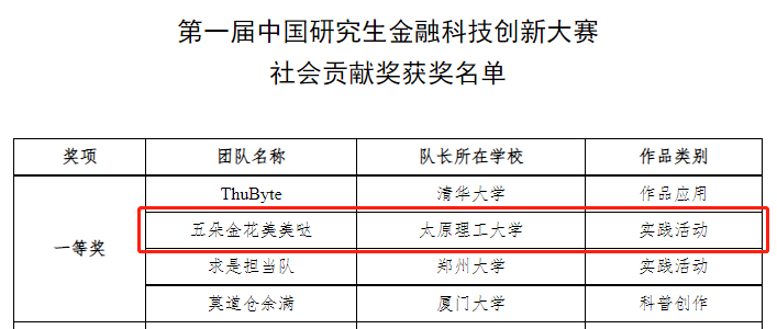近日,由教育部学位管理与研究生教育司、中国人民银行科技司指导,中国学位与研究生教育学会、中国科协青少年科技中心主办的第一届中国研究生金融科技创新大赛在清华大学落下帷幕。经过初赛、决赛的激烈角逐,bg大游集团官方网站最终斩获一项全国一等奖和一项全国三等奖,同时公司获评大赛优秀组织单位。