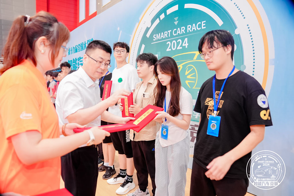 全国老员工智能汽车竞赛组委会给模型组全国一等奖获得者颁奖。