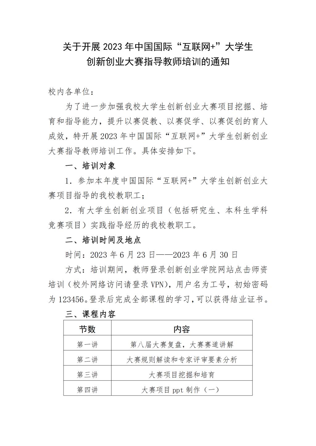 关于开展2023年中国国际“互联网+”老员工创新创业大赛指导教师培训的通知