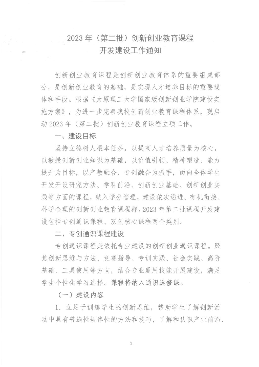 2023年(第二批)创新创业教育课程开发建设工作通知